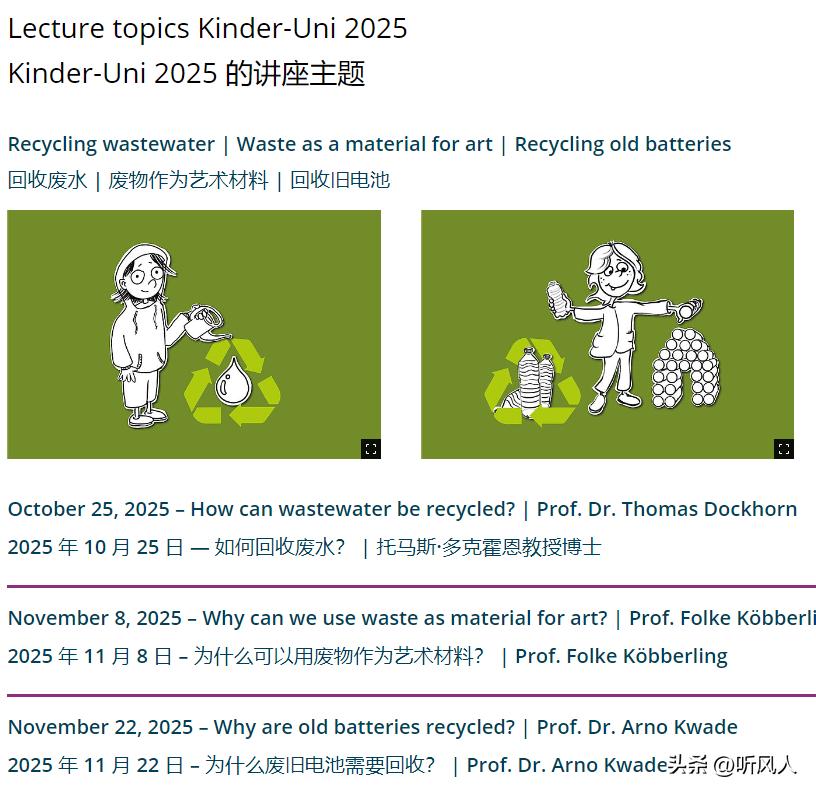 与此同时,这种“绿色至上”的氛围,也影响到了教育领域。正是从2021年开始,德国儿童大学的课程内容,开始直线下滑。曾经涵盖机械、计算机、仿生学等前沿领域的丰富课程,被单一的“环保”主题取代。授课教授从工科专家,转为社会学、艺术系学者,课程数量从每年5-6场缩减到3场,内容翻来覆去,缺乏创新。