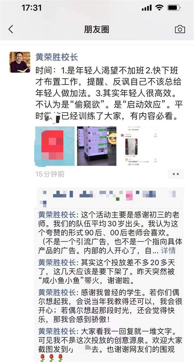 广告中出现的黄荣胜校长,其身份引发校友集体回忆杀。评论区瞬间变成"校友认亲现场":"这不是当年给我们徒手画电路图的物理老师吗?""他上课时粉笔头扔得超准!"据悉,这位接地气的校长正是该校的"活招牌",其教学视频曾在短视频平台收获百万播放。