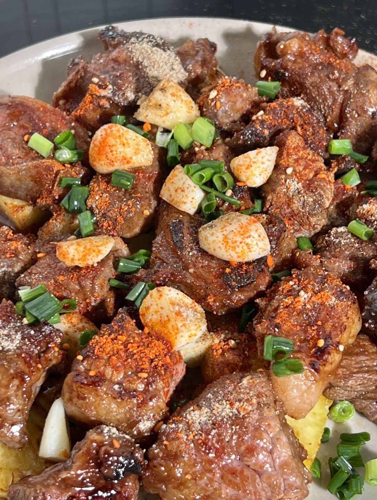 夹起一块牛肋条,外层的焦香与内里的软嫩在口中交织,椒盐的咸香恰到好处地衬托出牛肉的本味。再配上一块煎过的菠萝,清甜的汁水瞬间化解了肉类的些许油腻,让味蕾得到了一次全新的洗礼。这道菜,既有家常菜的朴实与温暖,又不失创意与惊喜。它告诉我们,美食的魅力,往往就藏在那些看似意想不到的搭配之中,等待着我们去探索,去品味。