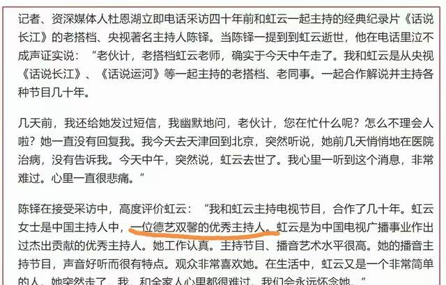 2月13日,播音主持界传来一大噩耗,前央视著名主持人、播音泰斗级人物虹云老师因病去世,享年81岁。