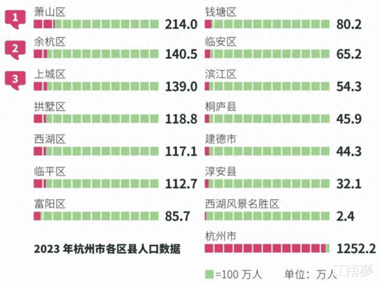 2023年杭州各区常住人口图