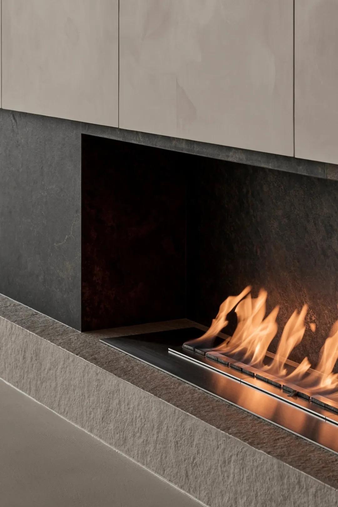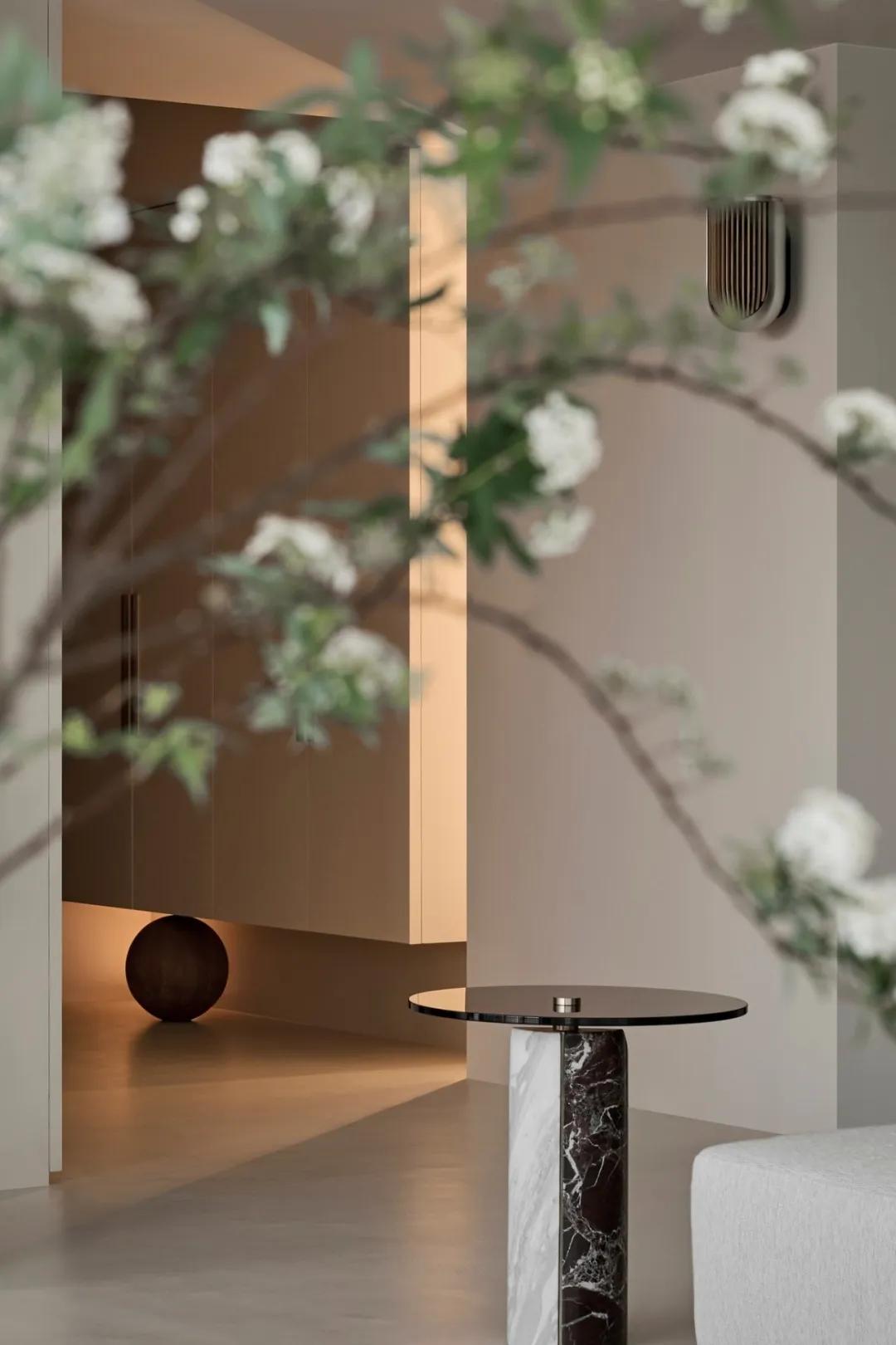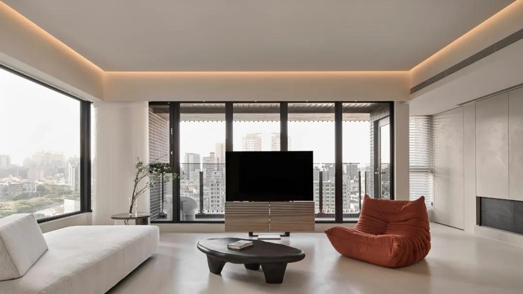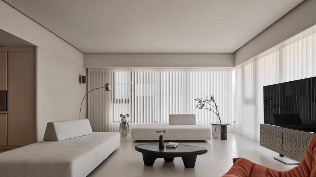 本案整体设计风格为现代简约,强调线条的简洁和空间的开放性。设计中大量使用了中性色调,如白色、米色和灰色,营造出一种宁静和谐的氛围。探索一种无边界的居住空间,模糊了公私领域的界线。透过连续材质、隐藏式收纳与柔和的动线,形塑出空间的自由流动感。线性壁炉作为情感核心,低调地传递温度与安定,而非视觉主角。