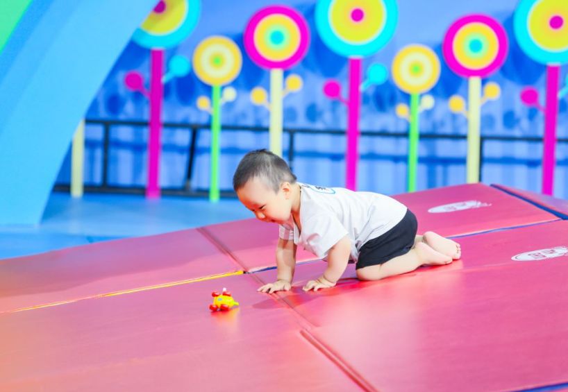 它是发展身体的协调性,宝宝俯卧,把玩具放到离宝宝大概50cm的地方,鼓励宝宝自己爬过来拿玩具。如果宝宝还不会爬,可以用大浴巾穿过宝宝胸腹部,妈妈站起来,拉住浴巾,轻轻托起宝宝腹部让他学爬。
