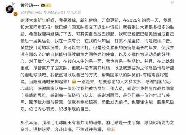 “震惊!羽坛名将黄雅琼为啥告别国家队?”