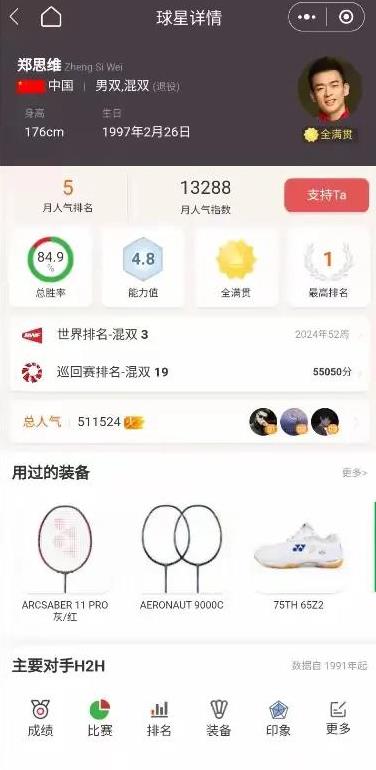 她和郑思维组成的混双组合,那在赛场上简直厉害得不行,多次把冠军奖杯捧回了家,对手见了他们都害怕。他俩在球场上的配合默契极了,就好像一对跳舞跳得特别合拍的舞者,每个动作都恰到好处,每个球都能打得稳稳当当、准准的,观众们看了都忍不住大声叫好,一个劲儿地鼓掌。