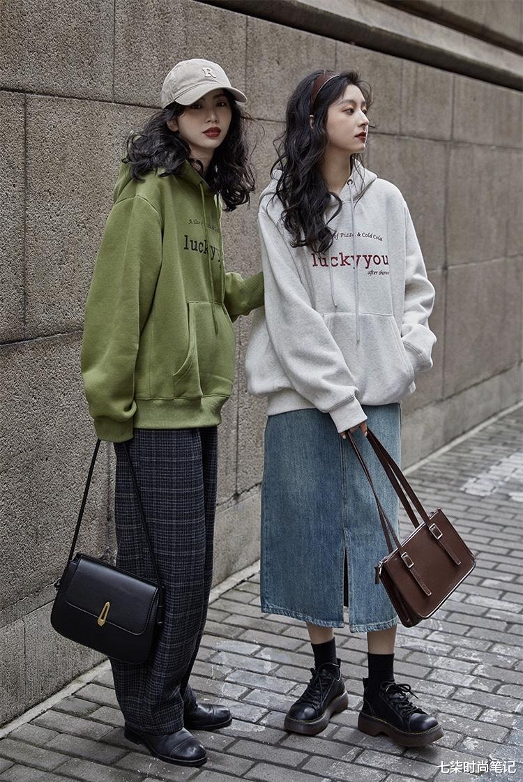 卫衣与直筒裙的组合兼顾日常通勤,想要更有层次,里面叠穿一件白T恤或者衬衫,既能提亮整体,又能悄悄提升时尚感。