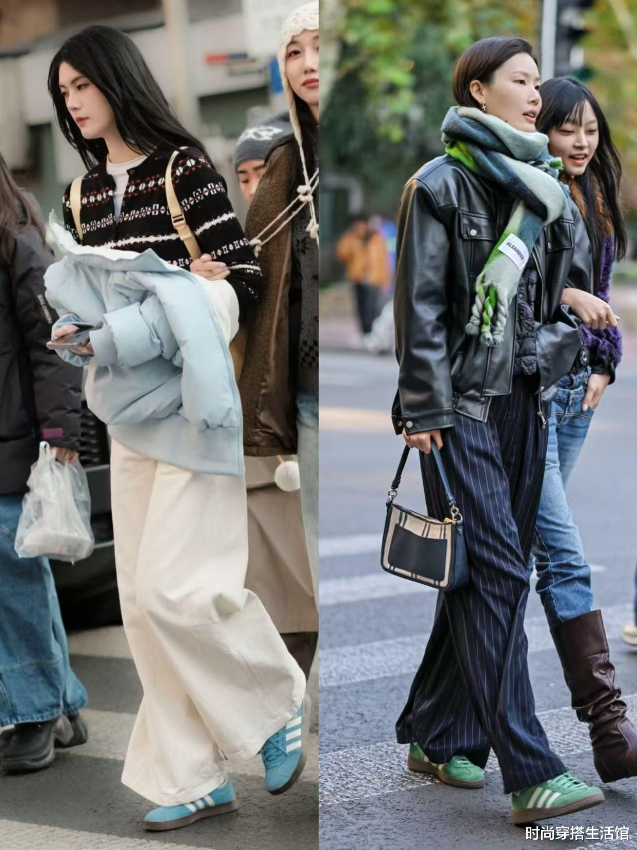而且对于普通人来说不知道穿什么的时候,我们除了可以通过短视频、杂志的穿搭借鉴之外,我们还可以借鉴普通的街拍穿搭,尤其是看到上海街头的韩国女性穿搭,个个都在穿阔腿裤和德训鞋,这两种都是一年四季最常见的简约搭配,但被她们穿出时髦又高级。