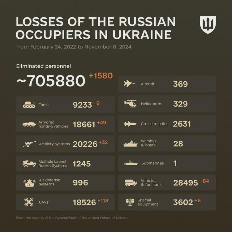2024年11月8日,俄乌冲突已持续超过980天,正进入第三个冬季。
