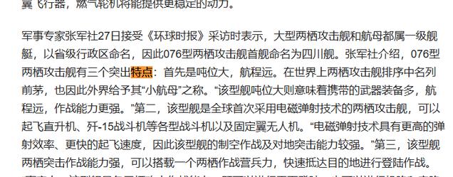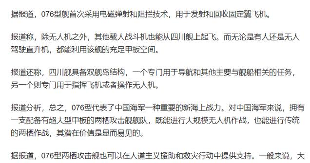 当然,四川舰下水的消息不仅仅是我们在关注,就连美媒也在第一时间进行了报道,美媒表示,076型代表了中国海军一种重要的新海上战力。