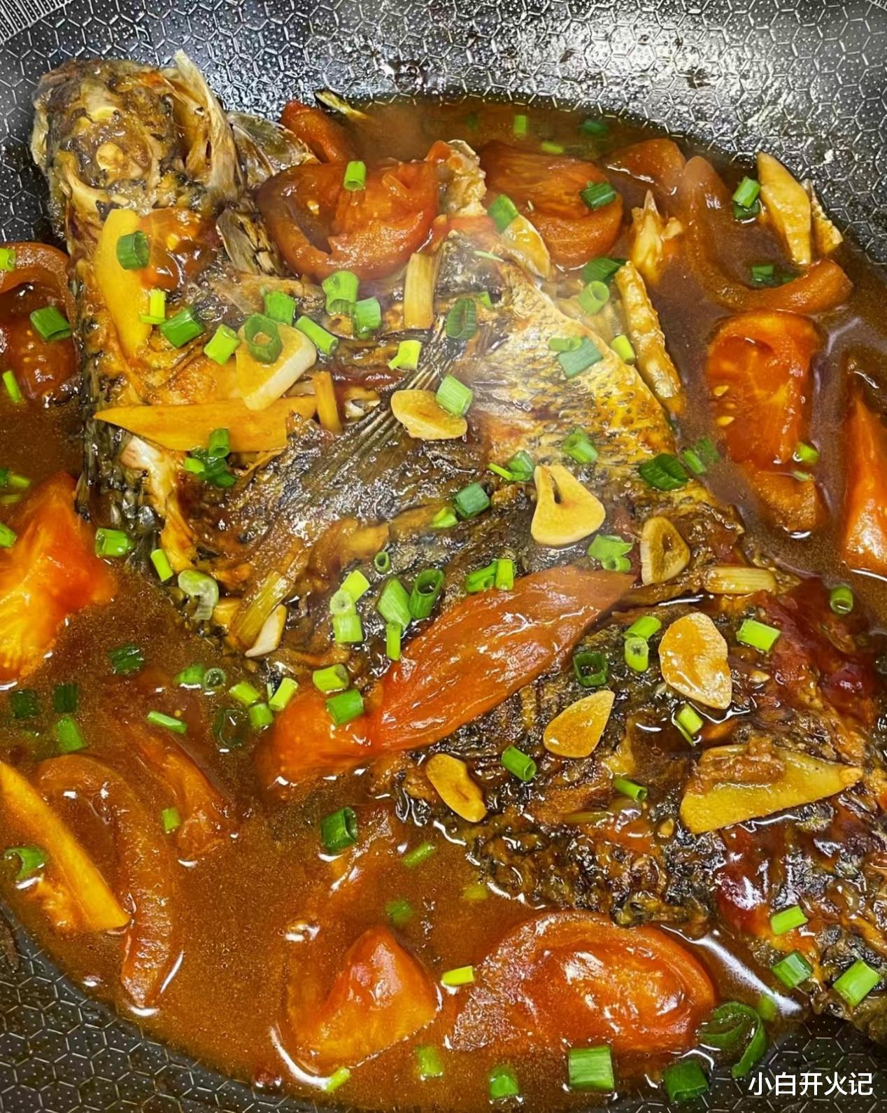 小贴士:1. 番茄一定要炒到出沙,汤汁才会天然浓稠,不用勾芡也亮晶晶;2. 煎鱼前一定要把表面水分按干,否则油花会比你先兴奋;3. 收汁别收太干,留一点汤,第二天煮面,加两片青菜,又是一顿“快乐续杯”;4. 如果喜欢更酸,起锅前滴两滴白醋,酸味会更立体,但记得“滴”不是“倒”,手抖可就没有回头路了。