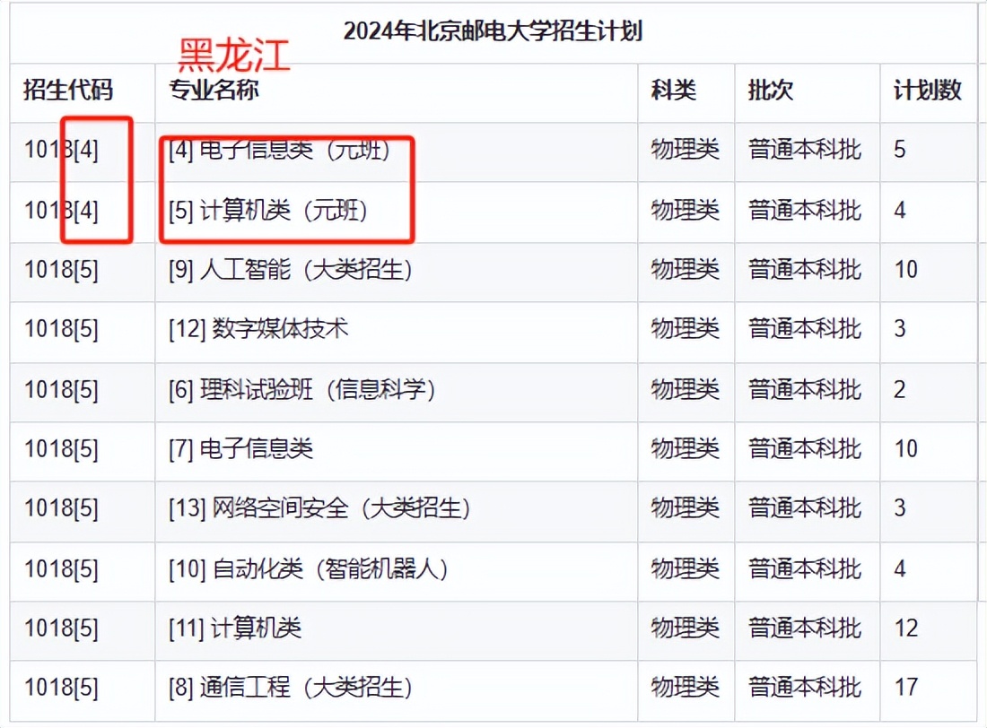 北邮在黑龙江分两个组招生,如下图所示,都为理工科类相关专业。