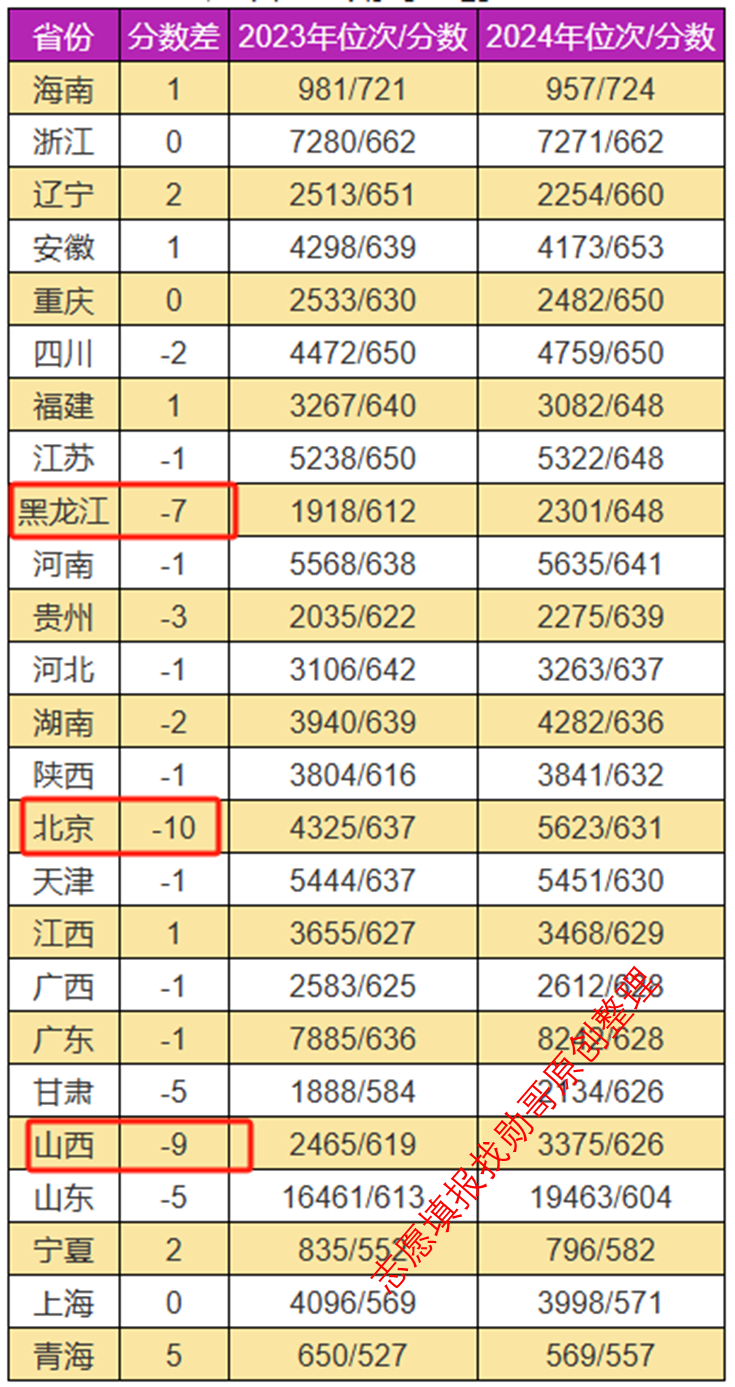 2、黑龙江下跌,属于正常波动。黑龙江考生人数少,位次一波动,就有5分左右的差别。
