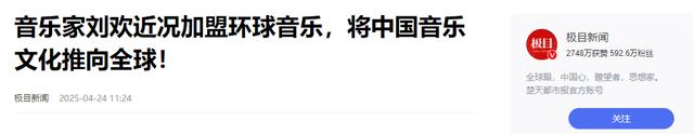 原文记载于极目新闻2025.04.24关于:音乐家刘欢近况加盟环球音乐,将中国音乐文化推向全球!