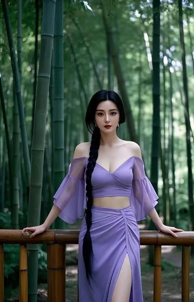 在那片远离尘嚣、静谧深邃的竹林深处,藏着一个不为人知的秘密,一段关于美与自然的诗意邂逅。阳光透过密集的竹叶,洒下斑驳陆离的光影,为这片古老的竹林披上了一层神秘而又温柔的面纱。就在这光影交错之间,一位身着紫色裙子的漂亮女子缓缓步入,仿佛是误入凡间的仙子,为这片竹林增添了一抹不可言喻的灵动与雅致。