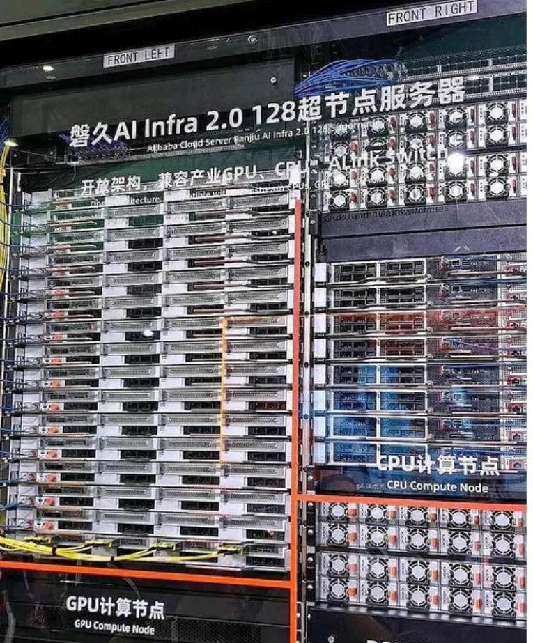 不过,最让同行服气的还是阿里的软硬件协同优化能力。磐久AL128超节点与阿里云自研的 HPN 8.0 高性能网络、CPFS 并行文件存储以及人工智能平台 PAI 深度集成,形成了从底层硬件到上层应用的垂直优化体系,通义千问模型基于此实现训练端到端加速比3倍提升。