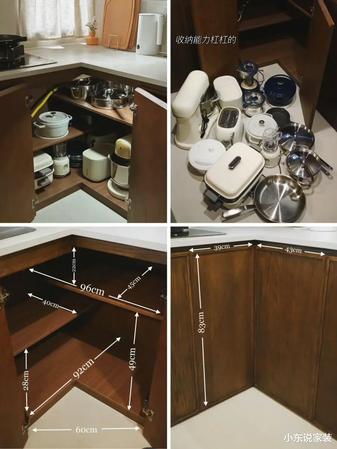 橱柜最浪费空间的区域,就是转角柜,使用起来很鸡肋;多数全屋定制会推荐安装拉篮,虽说能解决这个问题,但性价比实属不高。