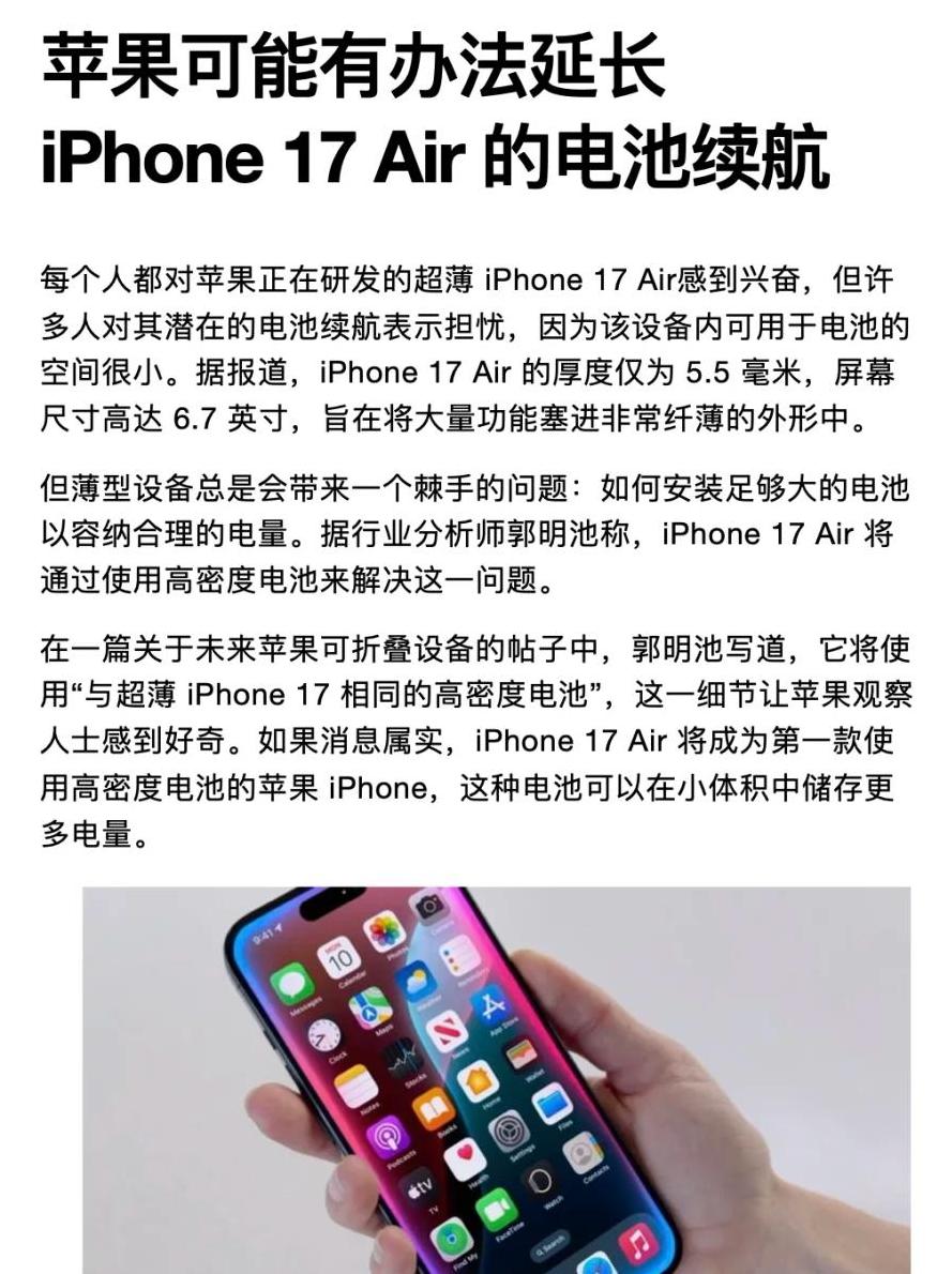 新的iPhone 17 Air却将轻薄进行了极致的追求。