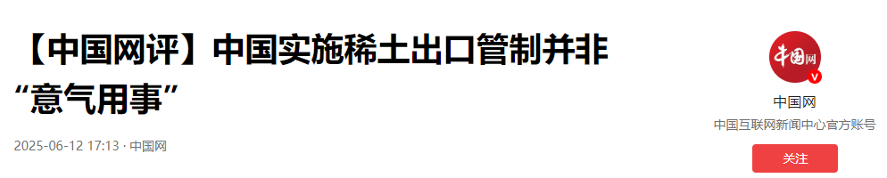 【中国网评】中国实施稀土出口管制并非“意气用事”,2025-06-12 17:13·,中国网