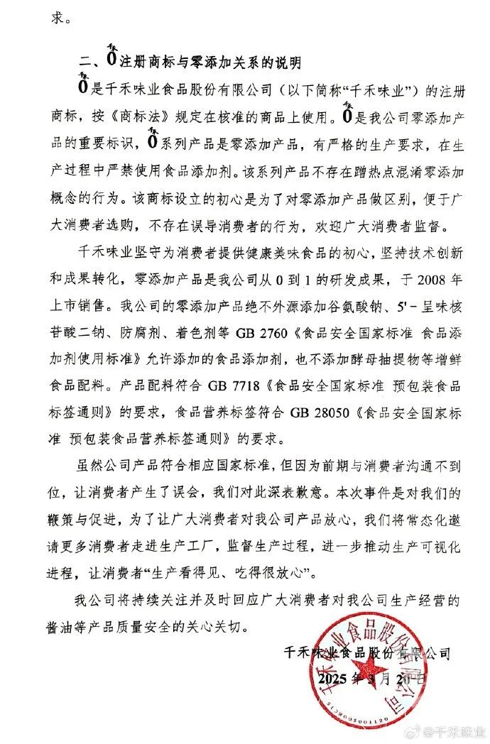 四、危机公关翻车:千禾的“三次致命回应”3月20日凌晨,千禾味业官微发布的《致消费者的一封信》,被网友评为“教科书级失败公关”: