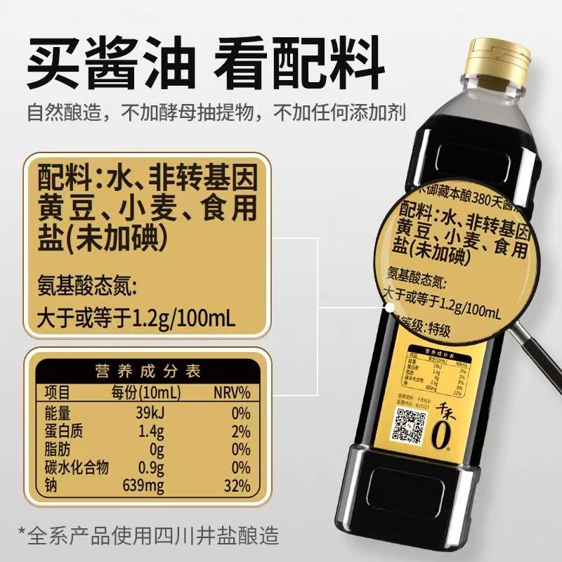 这个被刻意放大的“0”,配合瓶身“本味纯酿”“自然发酵”等宣传语,成功让消费者产生“零添加”联想。