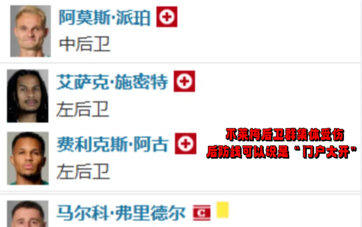 再加上芬德停赛、阿古长期伤缺、维泽尔赛季报销!