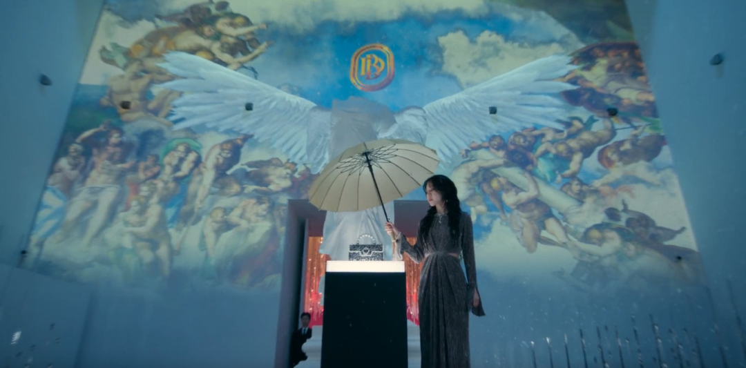 发布会的背景,是一幅巨大的投影壁画,取材自米开朗基罗的《创世纪》。金莎拉打造“蓓朵奥”的过程,就像上帝创造世界一样,从无到有,从虚无到璀璨。可遗憾的是,这幅壁画只是投影,是虚幻的,就像她的身份、她的人生一样,看似耀眼,实则不堪一击。