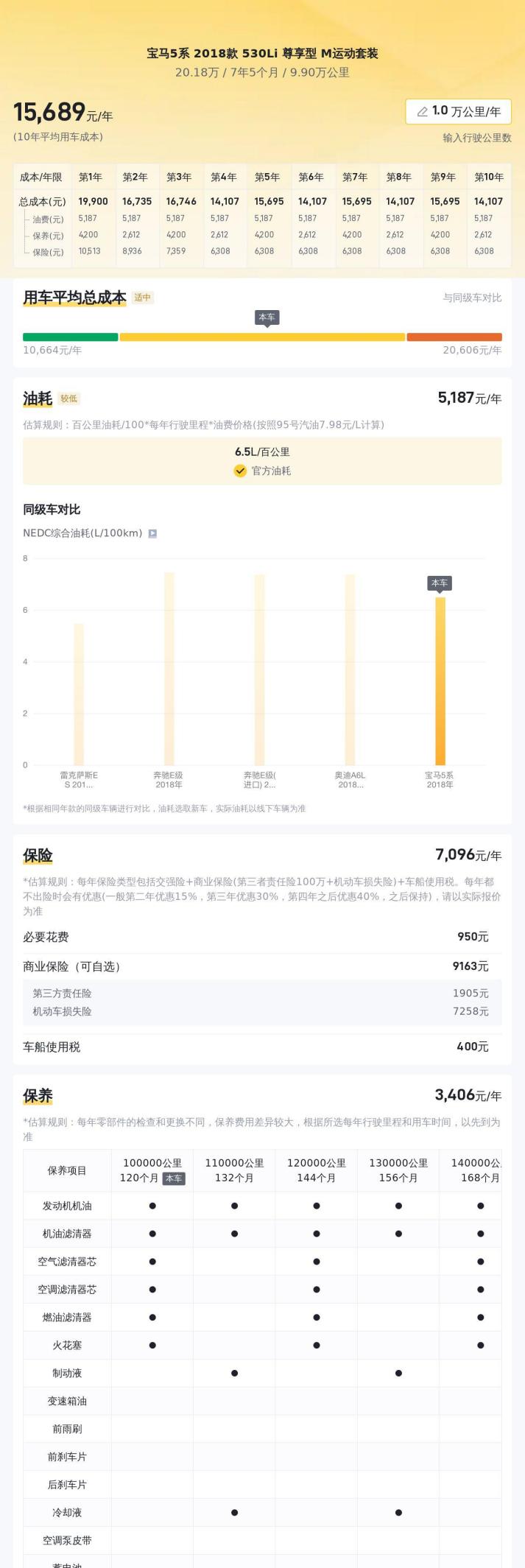 除了车况和价格,我们还需要考虑用车成本。根据估算,这辆车的年均综合用车成本约为1.6万元,包括油费、保险、保养等费用。这对于一辆豪华品牌轿车来说,还是比较合理的。
