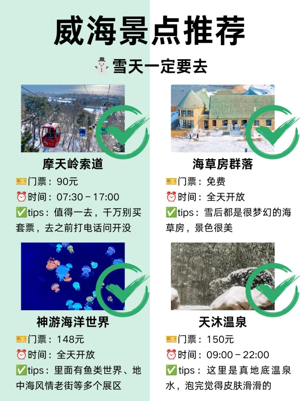 上周跟闺蜜一起去威海玩了,威海的雪景真的好漂亮!✨因为我们的假期时间不长,所以为了在短时间内可以玩得开心,我们两个在网上提前了解了很多景点信息才去的,📋这次去也是有小小记录一下,因为根本玩不够!