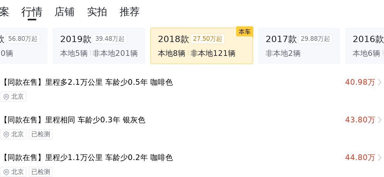 该车是2018年6月上牌的,有过一次过户记录,目前跑了8.9万公里,这个数字低于同年份车型的平均行驶里程。车源地位于青岛,上牌地也在青岛,车身颜色为白色,这个颜色符合市场主流,会有一定的价格加分。新车指导价为89.5万,目前二手车报价41.8万。