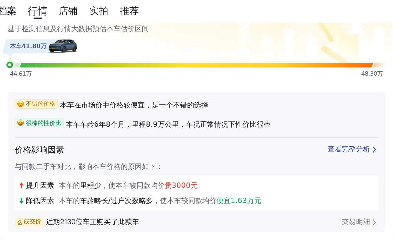 根据大数据分析,该车的售价在市场中处于较低的水平,是一个不错的选择。后续的保值率也会相对平稳。