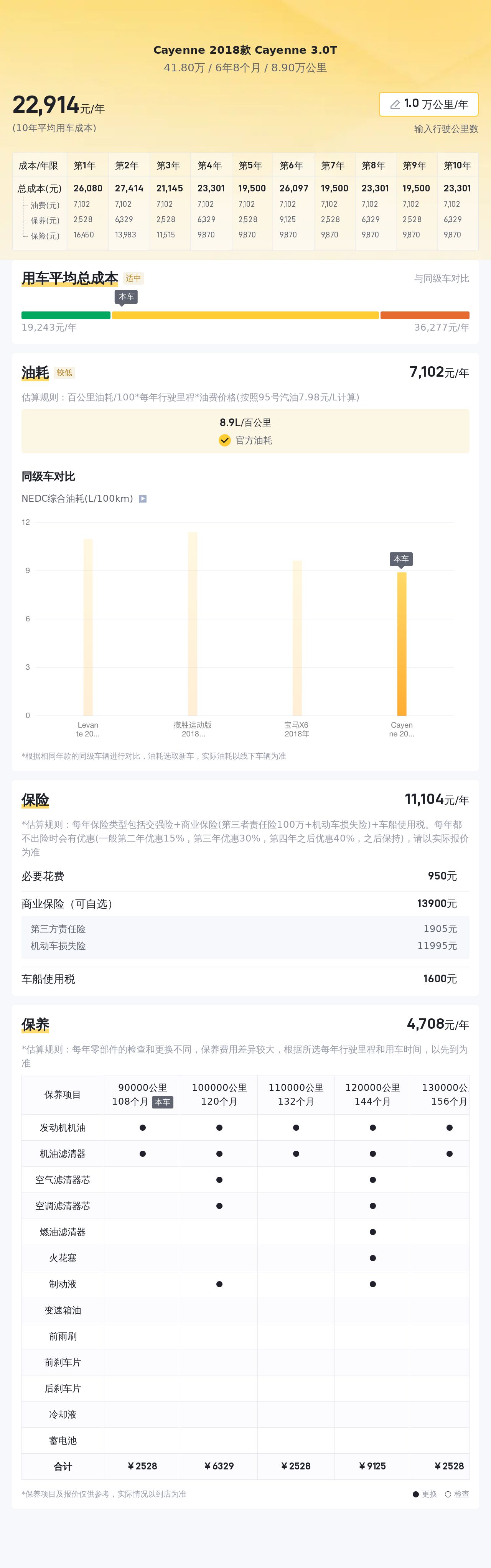 此外,根据估算,这辆车年均综合用车成本大概在每年2.3万元左右。