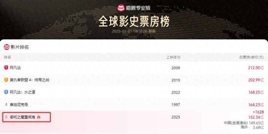 《哪吒之魔童闹海》票房突破151亿,跻身全球票房榜第五名,无疑是这次好莱坞翻拍计划的重要推动力。