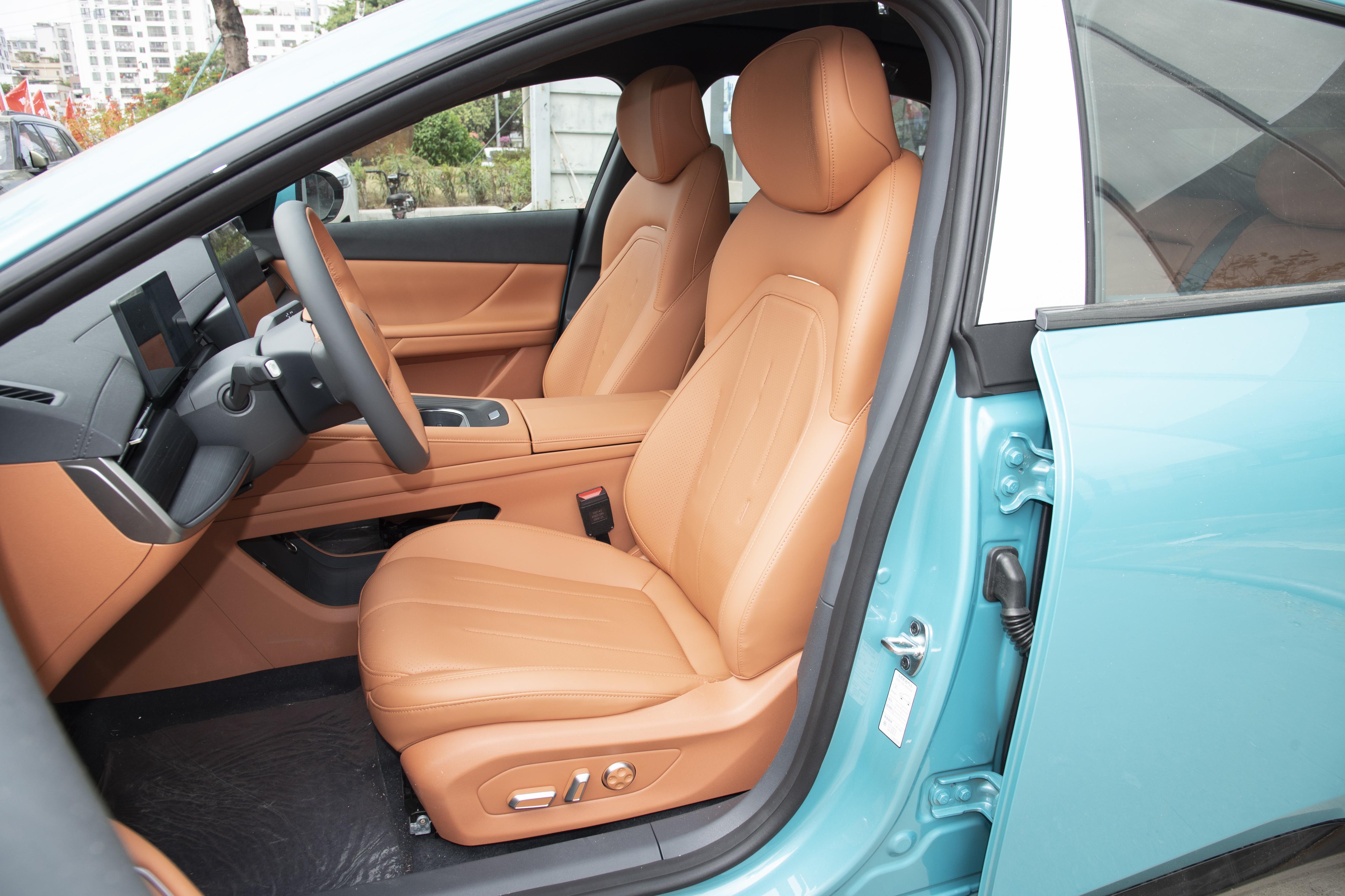 eπ007+还全系标配了前排50W手机无线充电、前排座椅通风加热与主驾座椅按摩、20个扬声器音响系统、64色氛围灯等。
