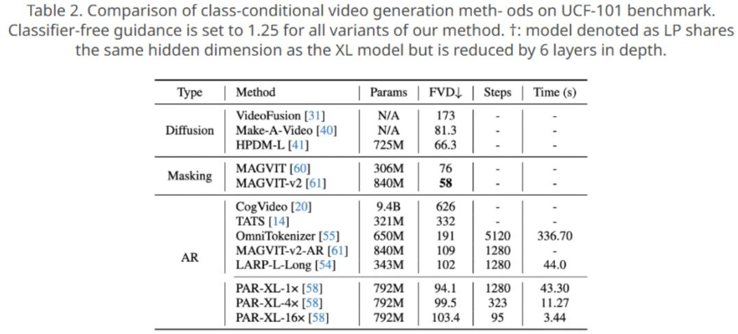 13.8倍吞吐提升研究人员在多个视觉生成任务上对NAR模型进行了全面评估,实验结果令人振奋:1、类别图像生成在ImageNet 256×256数据集上,拥有372M参数的NAR-L取得了比拥有1.4B参数的LlamaGen-XXL更低的FID(3.06 vs. 3.09),同时将生成步数减少了87.8%并带来了13.8倍的吞吐提升(195.4 images/s vs. 14.1 images/s)。与VAR-d16模型相比,NAR-M取得了更低的FID的同时(3.27 vs. 3.30),能带来92%的吞吐提升(248.5 images/s vs. 129.3 images/s)。这说明与现有的自回归生成方法相比,NAR模型在生成效率和质量上均取得了显著提升。2、类别视频生成在UCF-101数据集上,NAR模型相比基于“下一个词预测”(next-token prediction)的自回归模型在生成步骤上减少了97.3%。相比并行解码方法PAR,NAR在FVD更低的同时将吞吐提升了8.6倍。这得益于NAR模型在时间维度上的并行生成能力,确保了视频帧之间的连贯性和高质量生成。3、文本到图像生成在GenEval基准测试中,NAR模型仅使用了0.4%的训练数据(6M)便获得了和Stable Diffusion v1.5相持平的综合得分。与参数量更大且拥有1.4B训练数据的Chameleon-7B模型相比,NAR的综合得分更高(0.43 vs. 0.39)且将吞吐率提高了166倍。