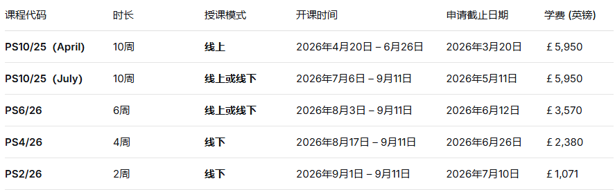 规划时间:7月开课的10周班是衔接9月主课最主流的选择。请务必在5月11日前提交申请,并在此之前考出符合要求的雅思成绩。