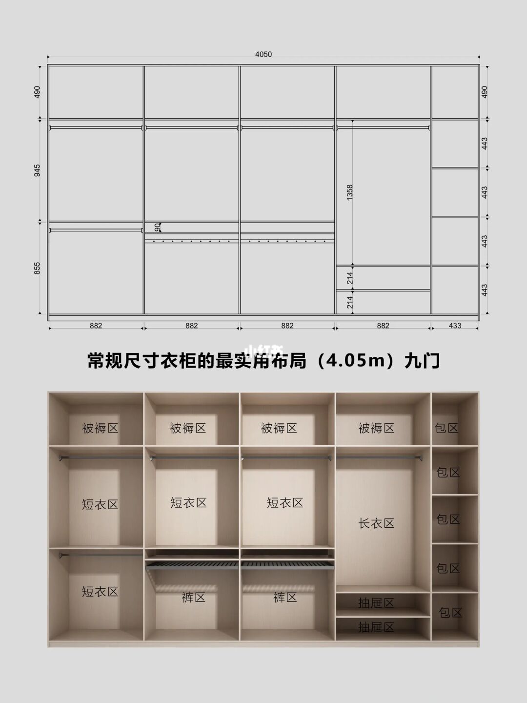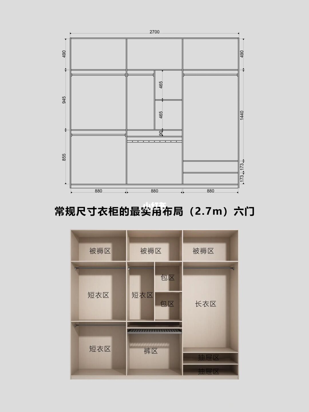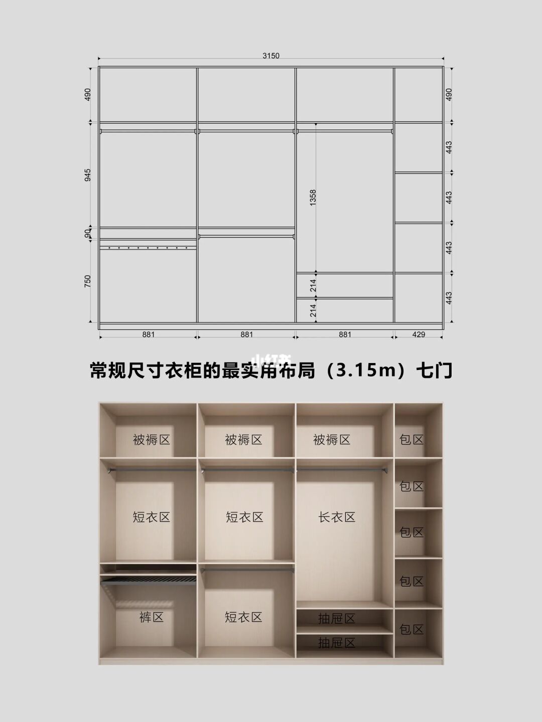 衣柜内部布局一般包含,长衣区,短衣区,裤子区,包包区,被褥区,杂物区,抽屉,还有的会有梳妆台等等