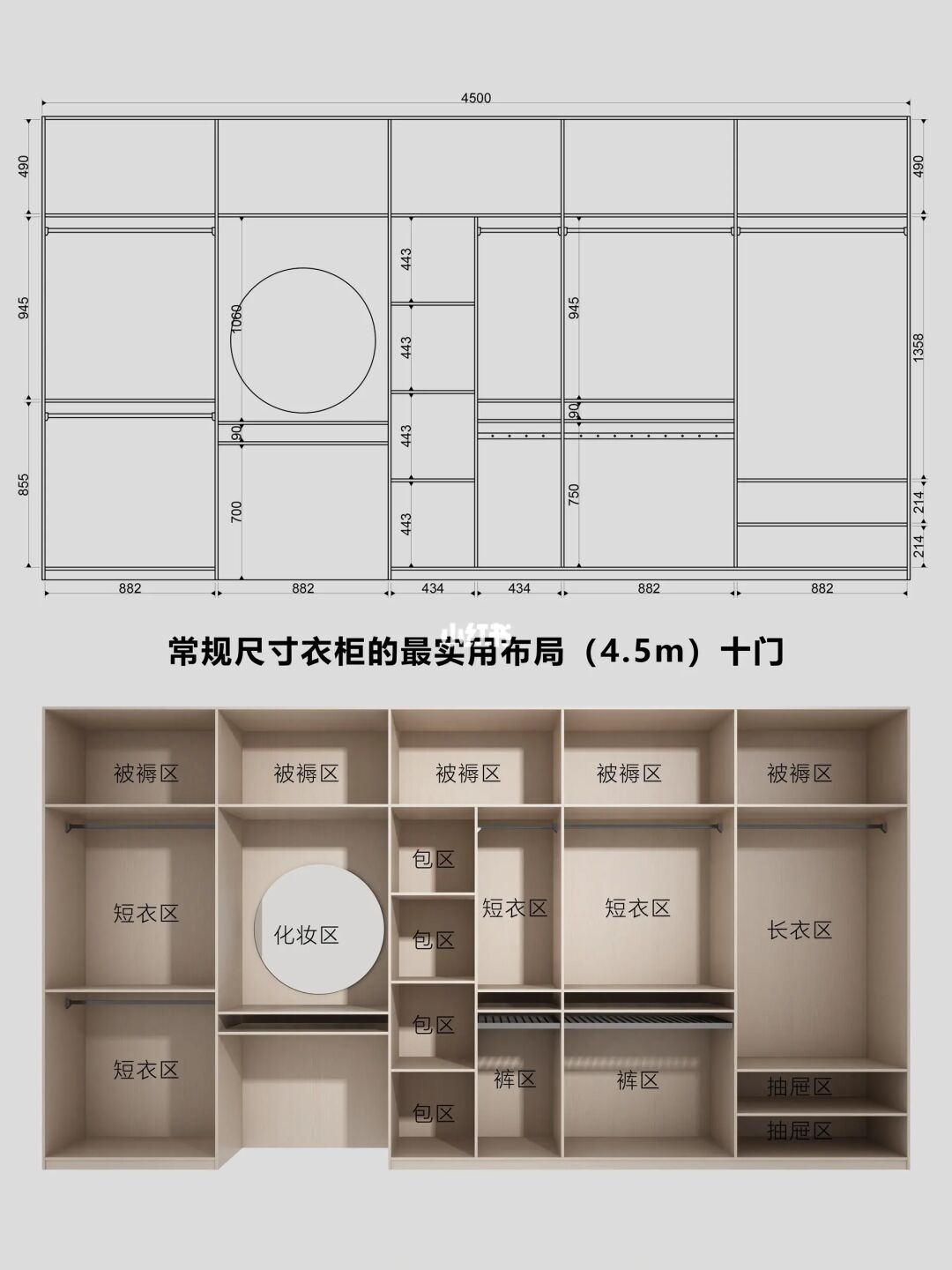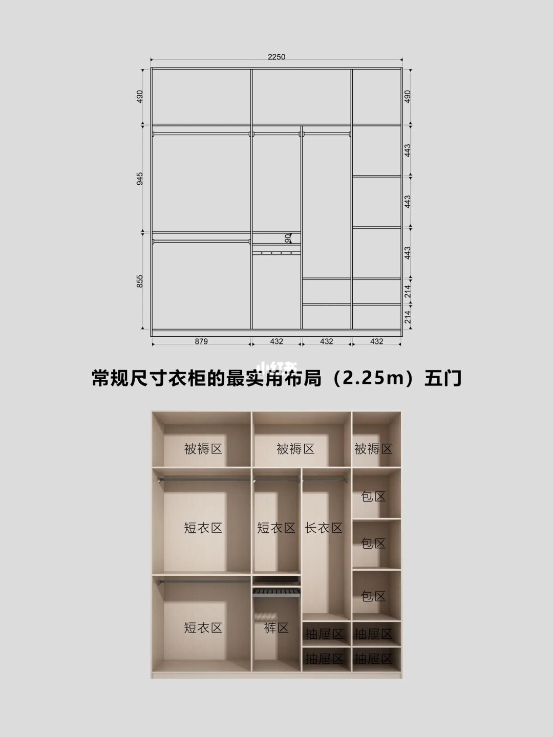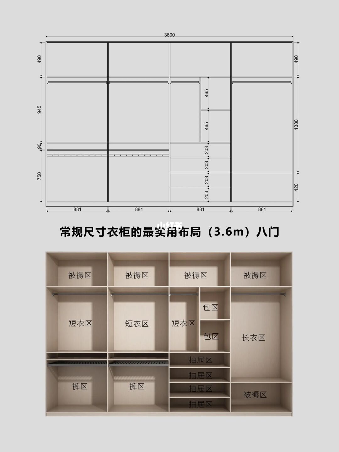 衣柜内部布局一般包含,长衣区,短衣区,裤子区,包包区,被褥区,杂物区,抽屉,还有的会有梳妆台等等
