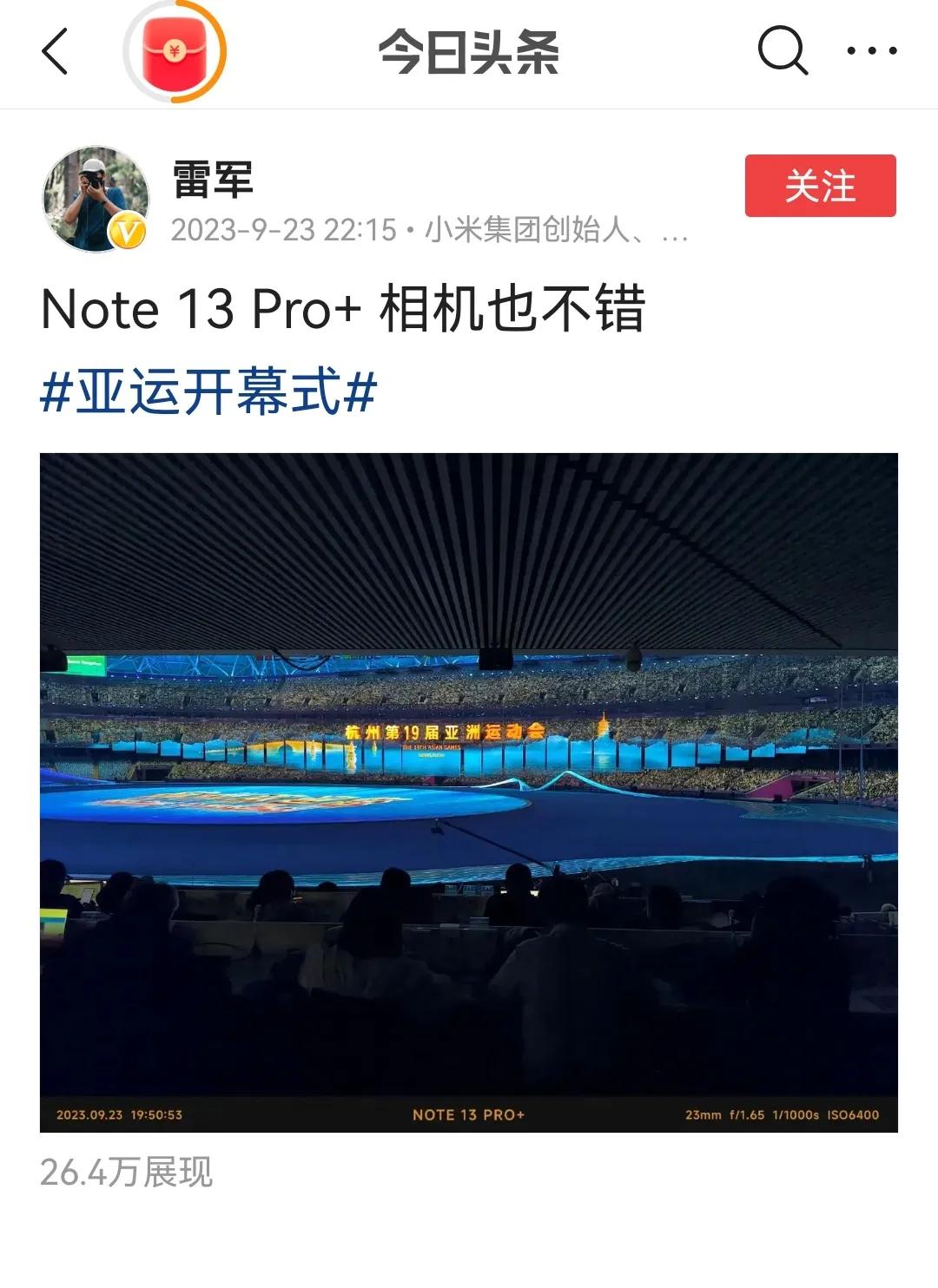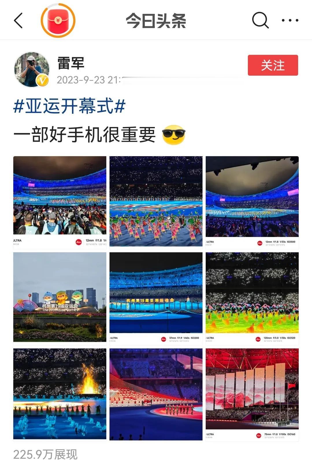 昨晚的亚运会开幕式,大家都看了没?作为亚运会官方手机的vivo,当然需要宣传一波。作为和徕卡索尼联合定义的小米,当然也要分享一波。而作为刚回归5g的华为,它成了亚洲时刻专用机,成了开幕式之前的15秒广告。这波实属赢麻了…