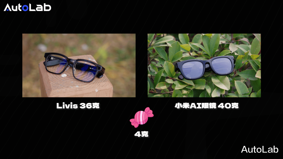 轻量化与长续航是体验基石。两款眼镜在这方面都交出了合格答卷:Livis裸重约36克,小米AI眼镜裸重约40克——数据上差异微小,但长时间佩戴时,每一克重量都会转化为真实的负担。
