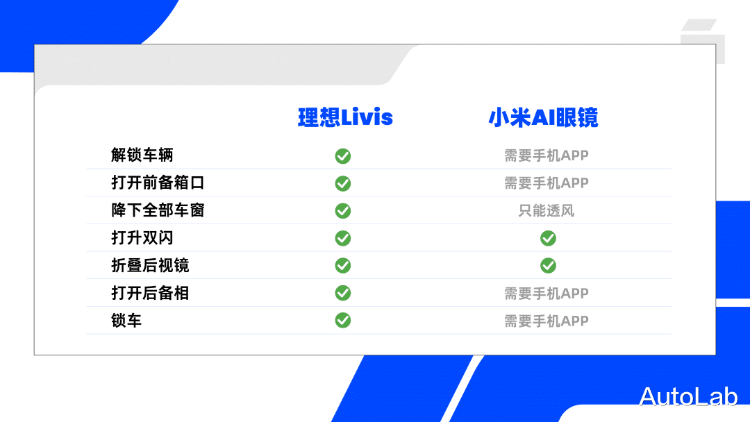 与此同时,在相同指令下,两者的理解会存在差异,例如“降下全部车窗”,Livis会全降四窗,小米AI眼镜则仅降下四个车窗的一部分,有点类似通风模式。