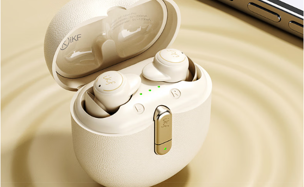 iKFMoonPro这款耳机长得还挺讨喜的,圆润小贝壳造型,奶米色机身带点细腻纹理,充电盒还有金属扣,开合手感很顺手。耳塞用的是奶嘴级液态硅胶,软软的很贴耳,大多数耳型戴起来都舒服,耳道敏感的朋友也能试试,就是稳固性会因人而异。