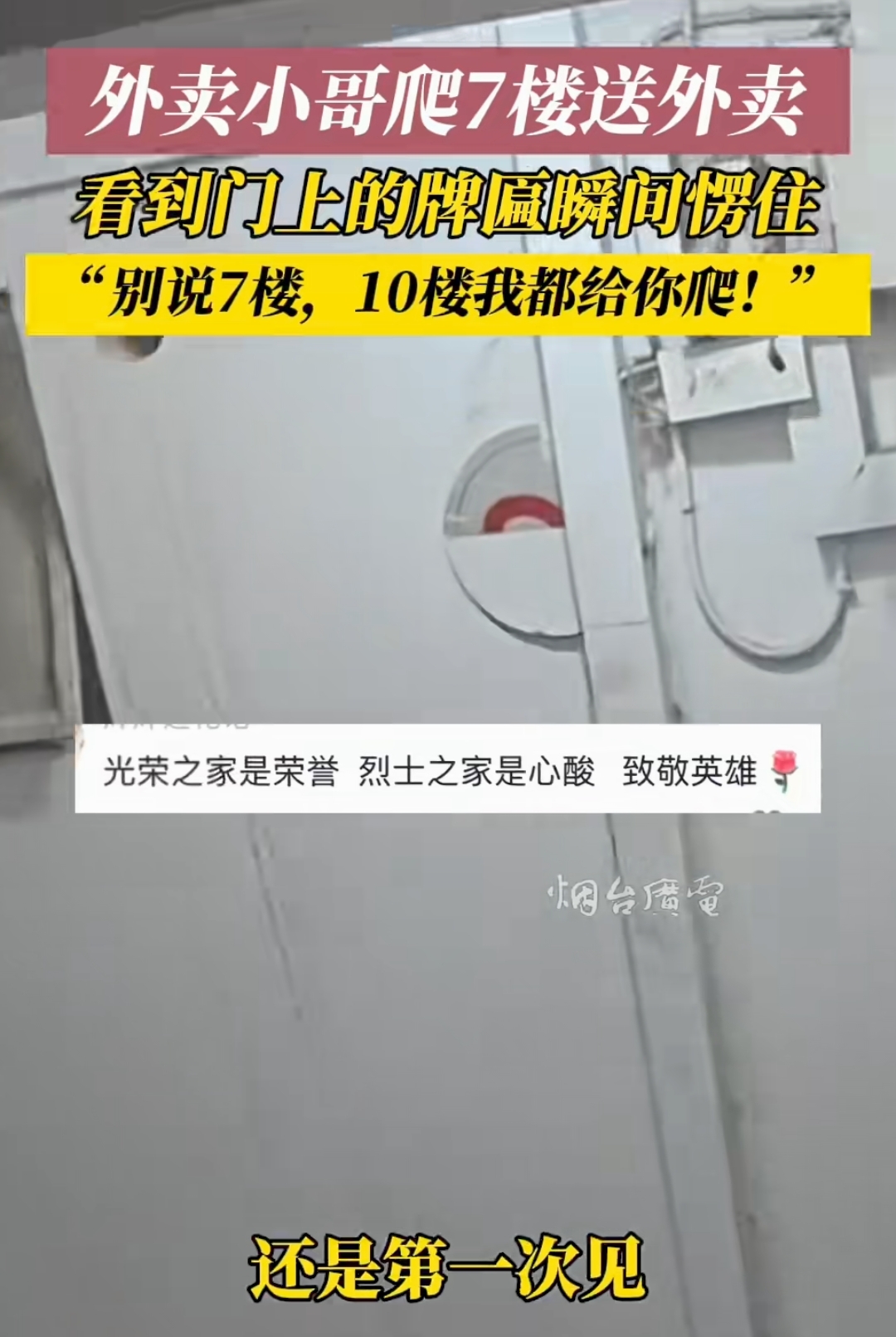 等他终于爬到顶层,正准备敲门把餐递过去,目光却被门框上方吸引了,那里整整齐齐挂着两块牌匾,其中一块写着“光荣之家”,而另一块赫然写着“烈士之家”。