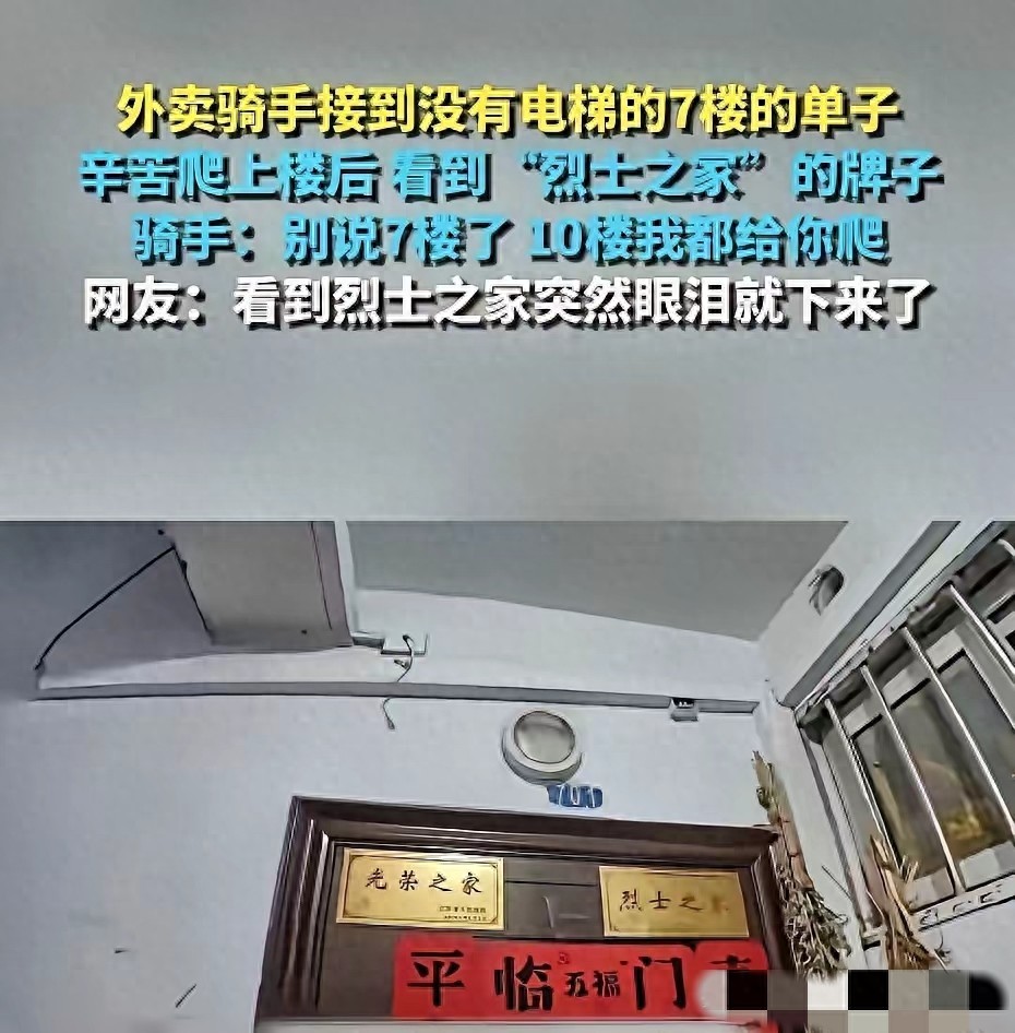 他心里那点爬楼的累,还有之前藏在心底的小抱怨,一下子全没了,看着那两块红底金字的牌子,他的眼眶当场就红了,手里的外卖感觉变得沉甸甸的,那是沉甸甸的敬意。