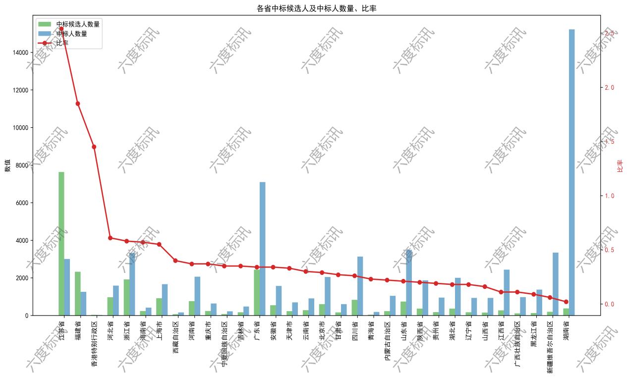 在2024年招投标数据中,统计出各省中标候选人数量、最终中标人的数量,用来分析各省在招投标领域的竞争、垄断、透明程度,具体性质可结合数据,咨询了解当地业务实际情况来研判,该数据仅提供分析角度,不做任何性质界定。