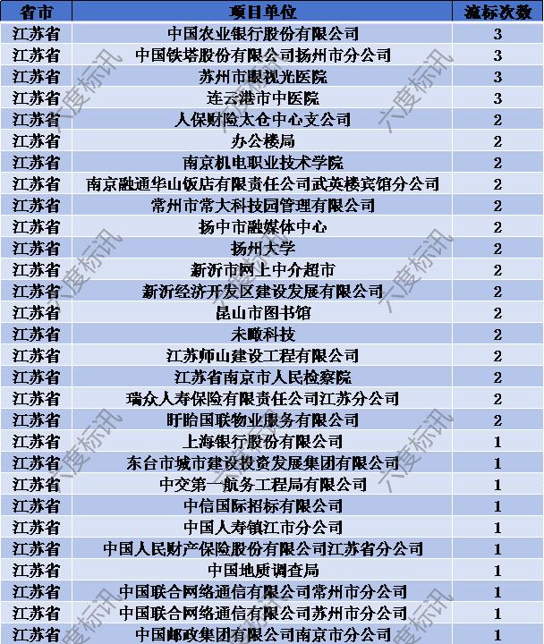 从2024年招采数据中计算出各省市企业存在的流标情况。以江苏省为例,共计算出44家流标企业,部分流标企业如下所示: