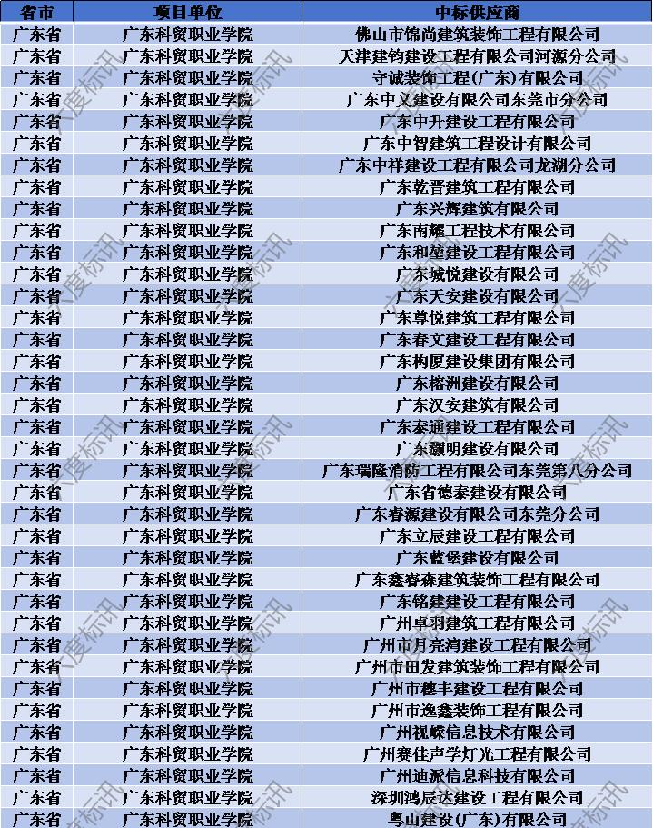 经过数据处理,2024年共统计出全国各省装修服务项目单位及供应商约10.4万条信息,以广东科贸职业学院这个项目单位为例,共计找出37家供应商单位,部分供应商单位示例如下: