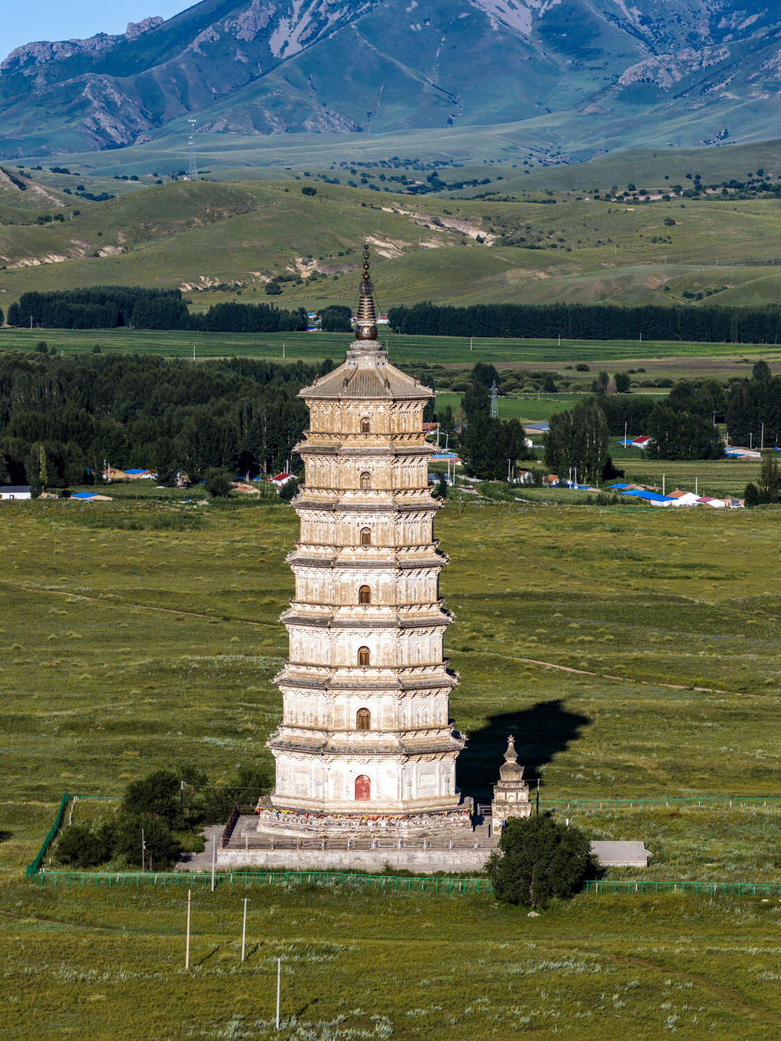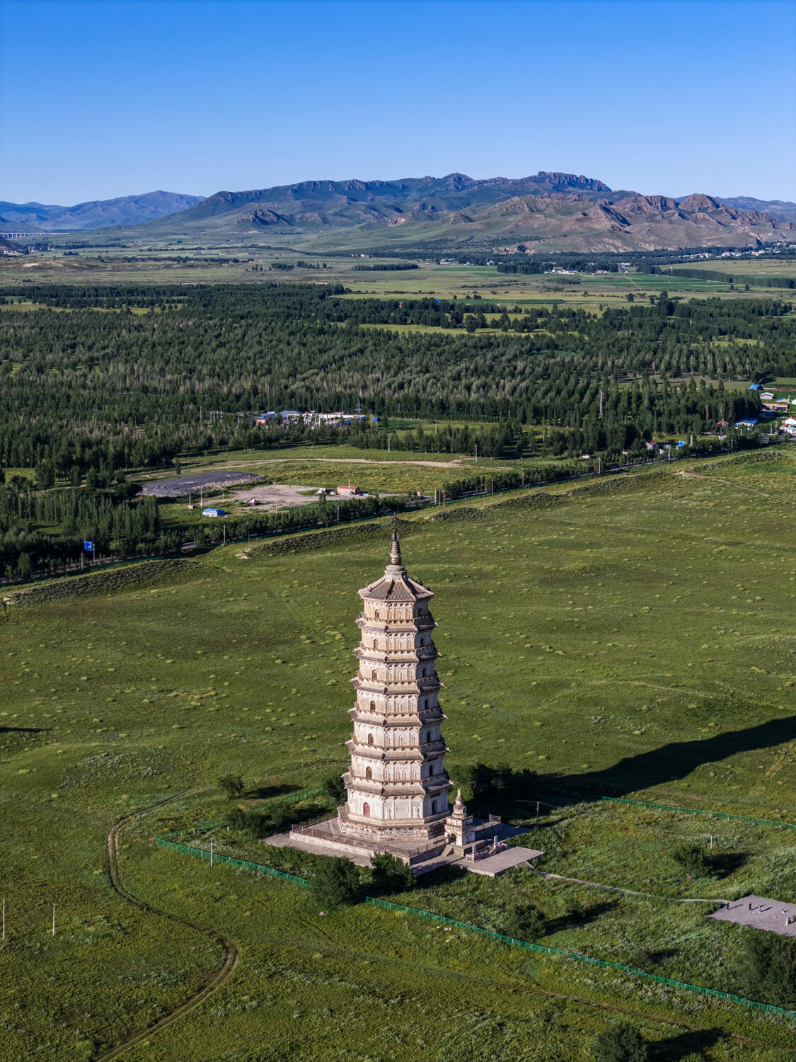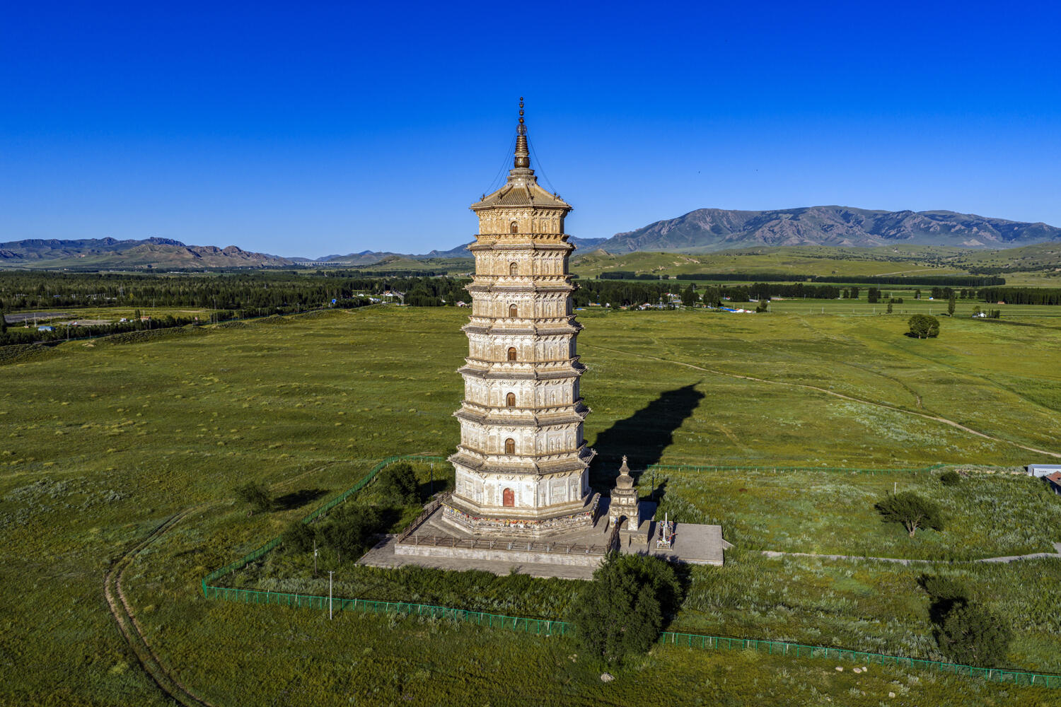 离开的时候,最后回头看了一眼白塔。它静静地站在暮色里,塔檐的铜铃还在响,风把铃声送出去很远。远处的公路上,一辆辆汽车呼啸而过,车里的人或许正讨论着这座塔该不该收门票,值不值得来看。但白塔什么都没说,它只是站在那里,看着又一个黄昏漫过草原,就像过去的一千年里,它看过的每一个黄昏一样。