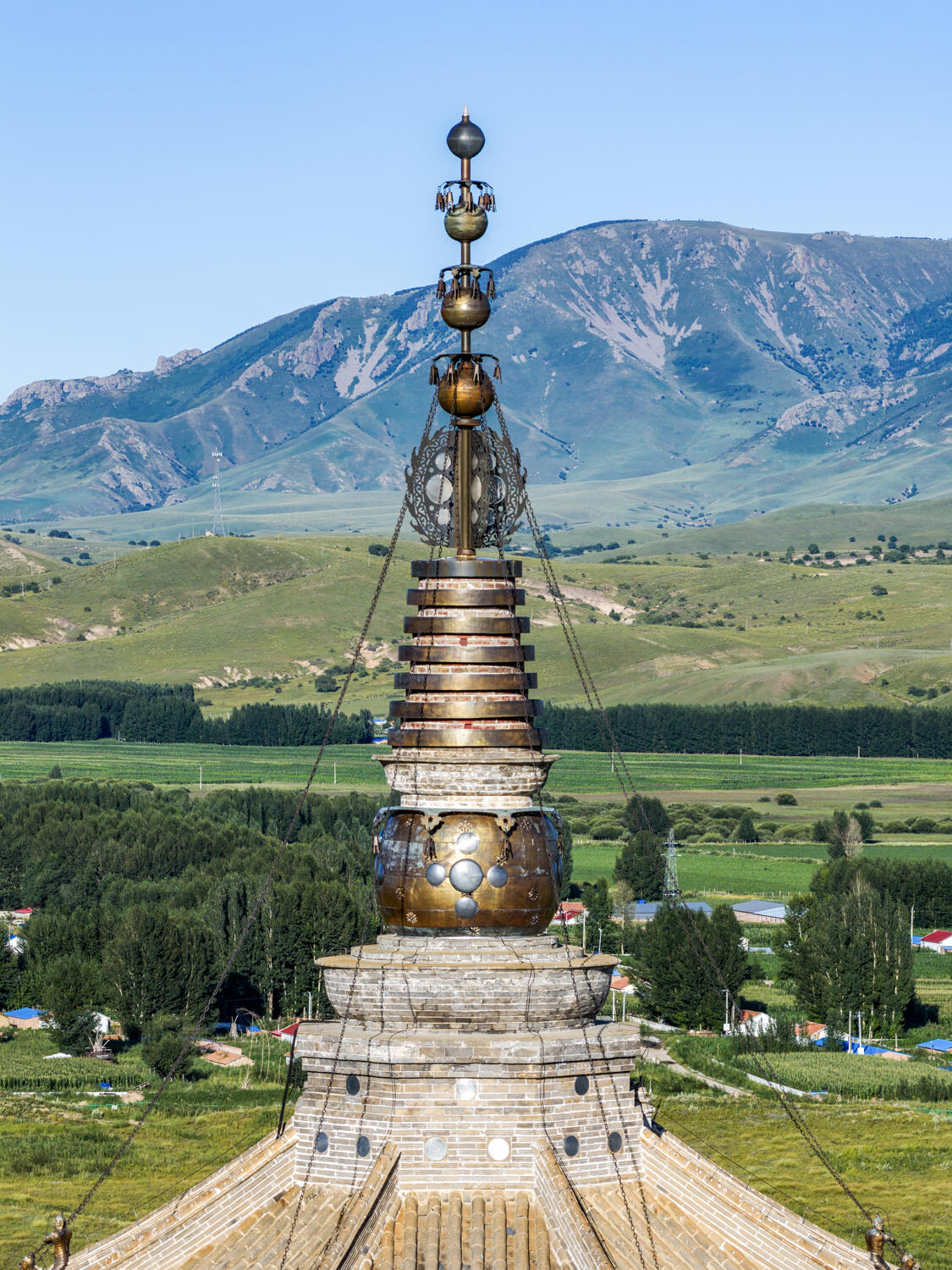 当车轮碾过最后一片草原砾石,那座白塔突然从地平线升起时,连最聒噪的旅伴都屏住了呼吸。你很难想象,在这片被风刮了千年的草原上,会突然撞见这样一座浑身披挂金箔的佛塔——它像一枚被巨人遗落的玉簪,深深扎进科尔沁草原的腹地,塔檐下的铜铃还在摇晃着辽代的风声。