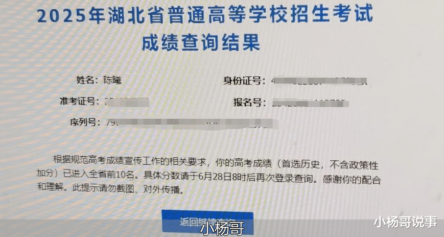 果不其然,黄老师在成绩揭晓名单上就发现了让自己喜上眉梢的惊喜,那匹一鸣惊人腾空崛起的“黑马”陈隽祺,平常测试大致维持于 600 分出头左右犹如稳定行走在平凡轨道的列车般,此次高考却仿若一飞冲天的星际火箭,狂飙至 643 分高地,超常发挥让人连连惊叹他心态稳如泰山巨石般超强大心脏。若高考是炼造明珠的深沉海洋,那么他们就是经过海浪冲击磨砺后放出光芒四射、价值连城稀世珍宝。