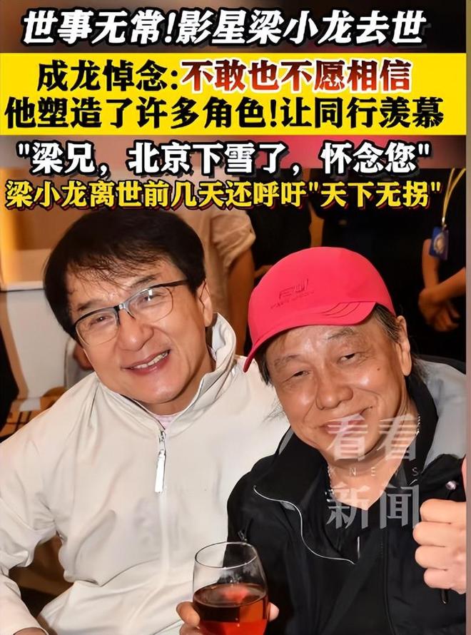 梁小龙去世的消息传出后,演艺圈多位名人发文悼念。成龙在微博发文:“惊闻梁小龙先生离世的消息,一时之间不敢也不愿相信......梁兄,北京下雪了,天很阴,怀念您。”